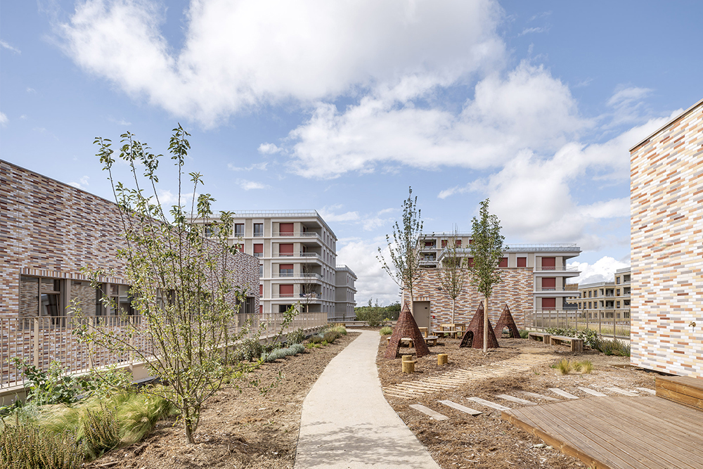 Ce parti pris nous permet de générer un chantier vert à faibles nuisances pour le voisinage, en filière sèche, moins bruyant et moins polluant. En effet, c’est un chantier aussi plus économe en eau et en énergie s’inscrivant dans les objectifs environnementaux du label E+C-. Le faible bilan carbone de la construction bois et du béton recyclé permettent également de mettre en place une véritable dynamique environnementale.