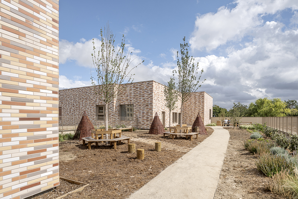 En complément des cours OASIS en rez-de-chaussée, un jardin pédagogique de près de 600 m2 en toiture du R+1, est riche d’activités variées. De plus, il s’inscrit dans le grand paysage et participe au développement de la Ville-Parc. Le jardin pédagogique complète le dispositif de trame verte. En effet, ce dernier renforce l’insertion dans le caractère hautement végétal du site. Ainsi, il est accessible facilement depuis les deux écoles et autorise de multiples activités dans une autre spatialité.
